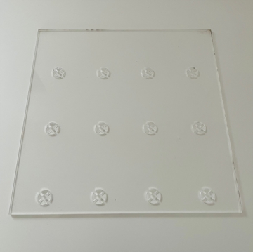 OBS - De runde Legoplader 2x2 kan kun monteres fra den ene side af akrylpladen, og er tydelig anført på akrylpladen.