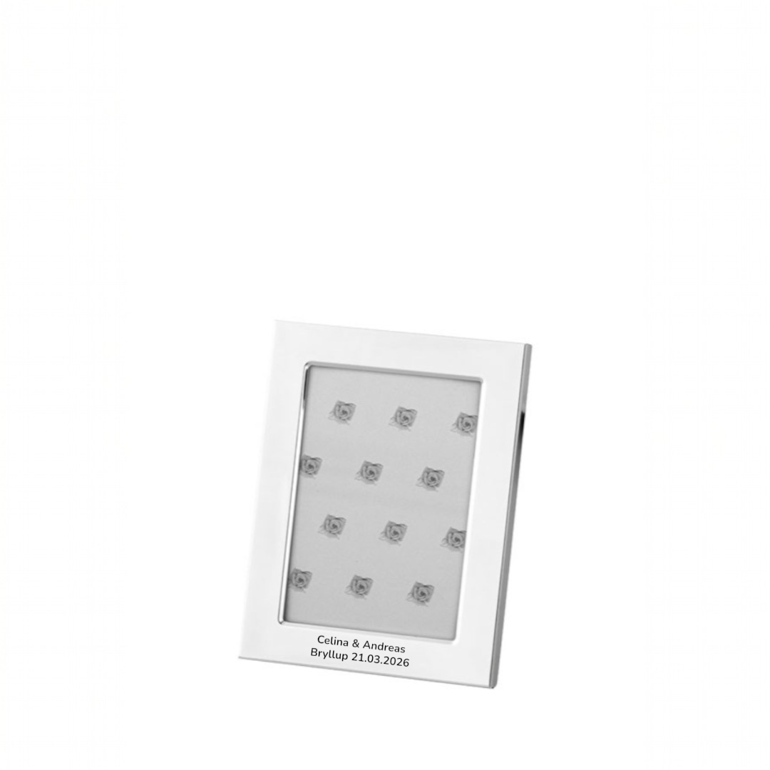 Eksklusiv og stilren forsølvet billederamme med plads til et smukt minde. Forær fotorammen med en personlig indgravering til enten brudeparret, bedsteforældrene eller til barnet der skal døbes. Vi indgraverer gratis nederst på rammen. Med denne smukke forsølvet billedramme med navn,  er der mulighed for at holde fast i de smukkeste minder.