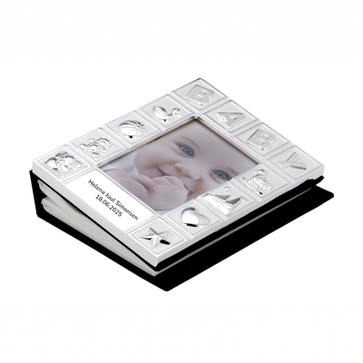 Kært forsølvet fotoalbum med plads til 72 billeder af den lille nye verdensborger. Fotoalbummet er dekoreret med søde babymotiver og kan benyttes til begge køn. Forær fotoalbummet med en personlig indgravering af barnets navn eller et kort citat for neden på fotoalbummet. Med et fotoalbum er der mulighed for at samle de mange minderige billeder, som gennem barnets spæde år, er blevet fanget af forældre, bedsteforældre og venner, som vil forevige de mange enestående stunder, de har nydt med den lille. Fotoalbummet er oplagt som en personlig dåbs- eller barselsgave.