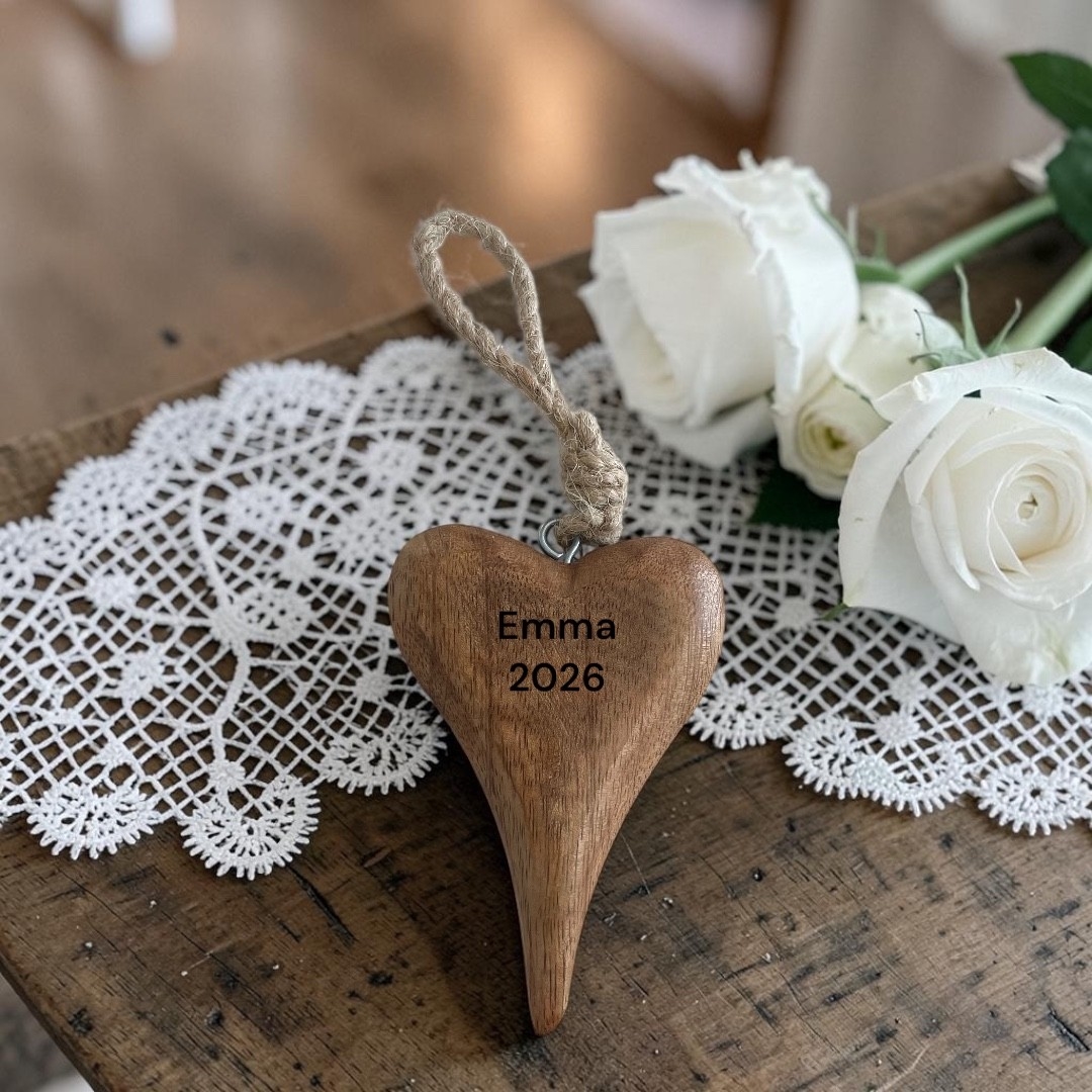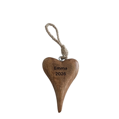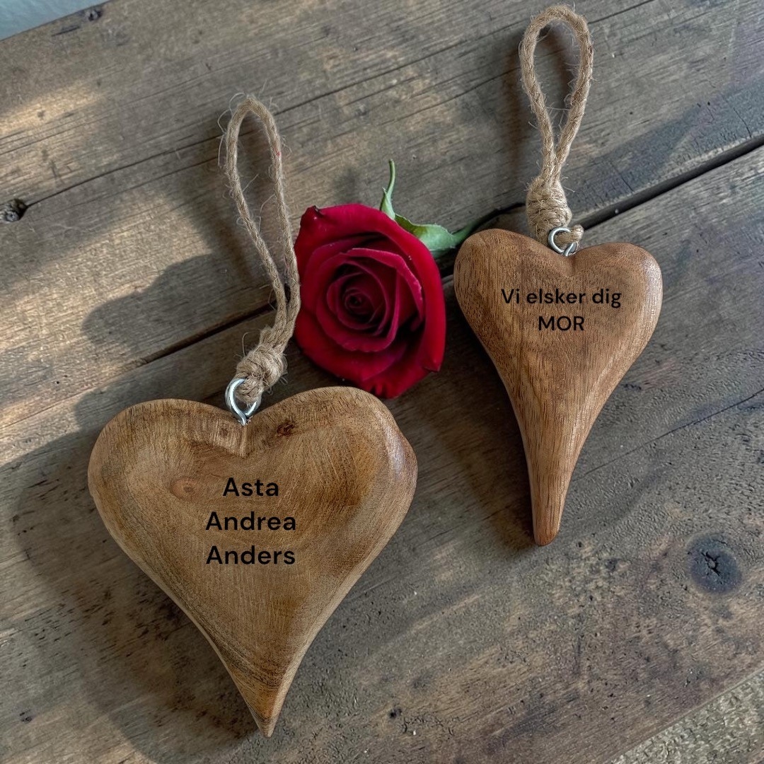 Håndfremstillet hjerte i smukt mangotræ med hampesnor fra Lesli Living. Hjertet kan med fordel indgraveres med et lille citat, en sød hilsen til den du holder af eller til brudeparret til minde om en uforglemmelig dag. Hjertet med navn er særlig populær, som morsdags gave samt julegave.