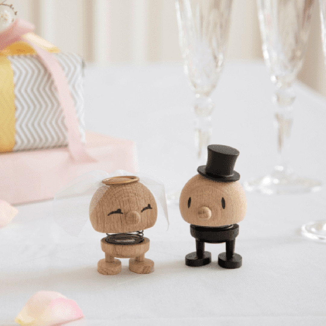 Forsød de nygifte med et Hoptimist brudepar - Hoptimist Bride & Groom. Hoptimisterne er en oplagt gaveídé med ønsket om et langt og lykkeligt ægteskab. Forær Hoptimist brudeparret med en personlig indgravering på bagsiden.