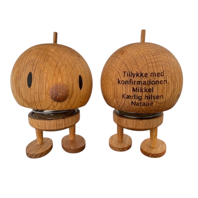 Sød Hoptimist - Medium Bumle i egetræ. Leveres i flot gaveæske og er skabt til at sprede glæde og sætte smil på alles læber. Ønsker du at gaven skal være personlig, lasergraverer vi gerne træfiguren gratis for dig. En populær gave til dåb, fødselsdag, studentergilde, bryllup eller bare fordi. En unik gave til den du holder af.