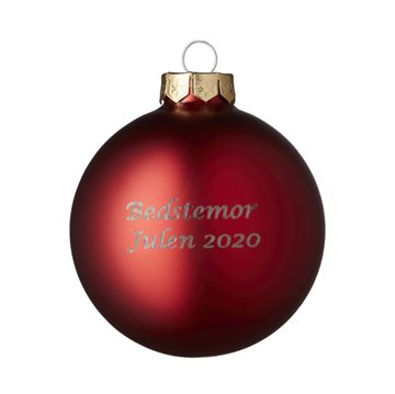 Rød julekugle med navn. Glaskugle med gravering