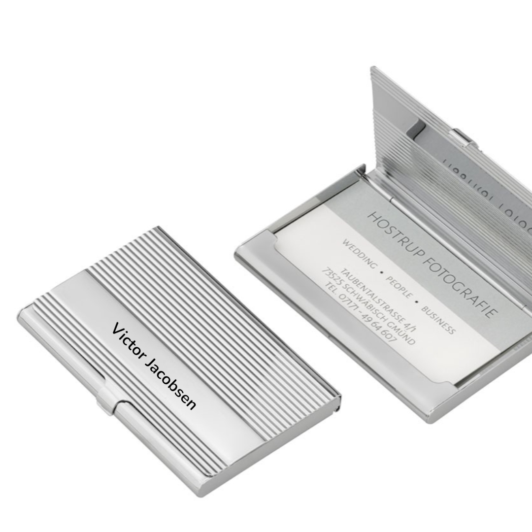 Smart og eksklusiv forsølvet kortholder til alle aldre. Kortholderen er en stilren og komprimeret holder til opbevaring af kreditkort og visitkort. Kortholderen kan personliggøres med gratis gravering til dig selv eller den du holder af. Kortholderen med navn er lavet i en super fin størrelse, således den er let altid at have ved hånden og ikke fylder unødigt. En populær gaveidé til konfirmationsgave, uddannelsesgave, værtsgave, farsdagsgave, julegaven eller til  firmagave.