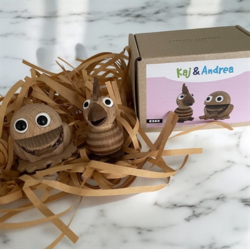 Forær dette smukke par træfigurer med Kaj & Andrea i massiv egetræ - designet af NOA Kids. Giv et tidsløst minde og få gratis indgraveret begge træfigurer med f.eks. navn og fødselsdato/dåbsdato. Træfigurerne med navn vil pynte perfekt på børneværelset eller i stuen og give et personligt præg til rummet. De sjove træfigurer henvender sig både til store og små - og er særlig populær som dåbsgave, navngivningsgave eller fødselsdagsgave. Den personlige gave leveres i pæn æske og vil med sikkerhed vække stor begejstring.