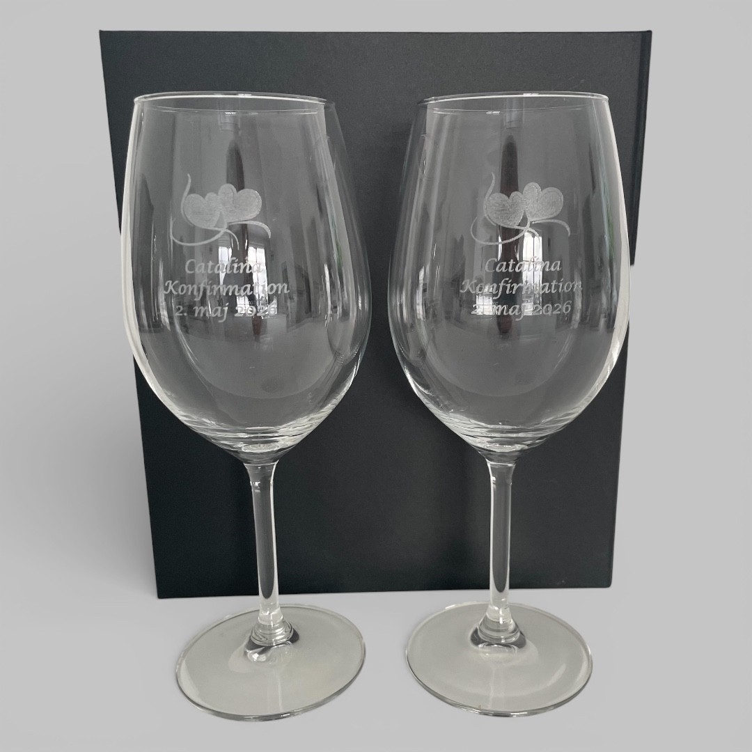 Glæd dem du holder af med disse smukke graveret glas. Vinglassene er en smuk og anderledes gave. Uanset hvilken anledning glassene gives i, vil de uden tvivl vække glæde og minder langt ud i fremtiden. Parret vil med stor sandsynlighed tage glassene i brug på deres bryllupsdage, til særlige middage og måske når tosomheden skal nydes lidt ekstra.
