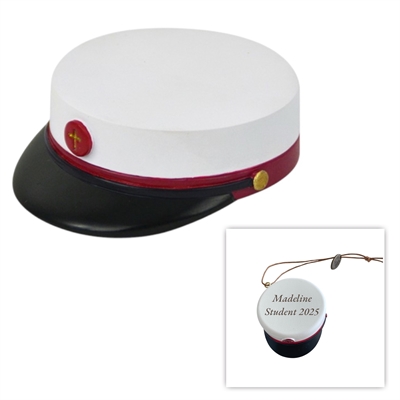 Størrelse: 1,6 x 4 x 6 cm. Håndmalet polyresin. Studenterhuen med navn leveres i flot gaveæske.